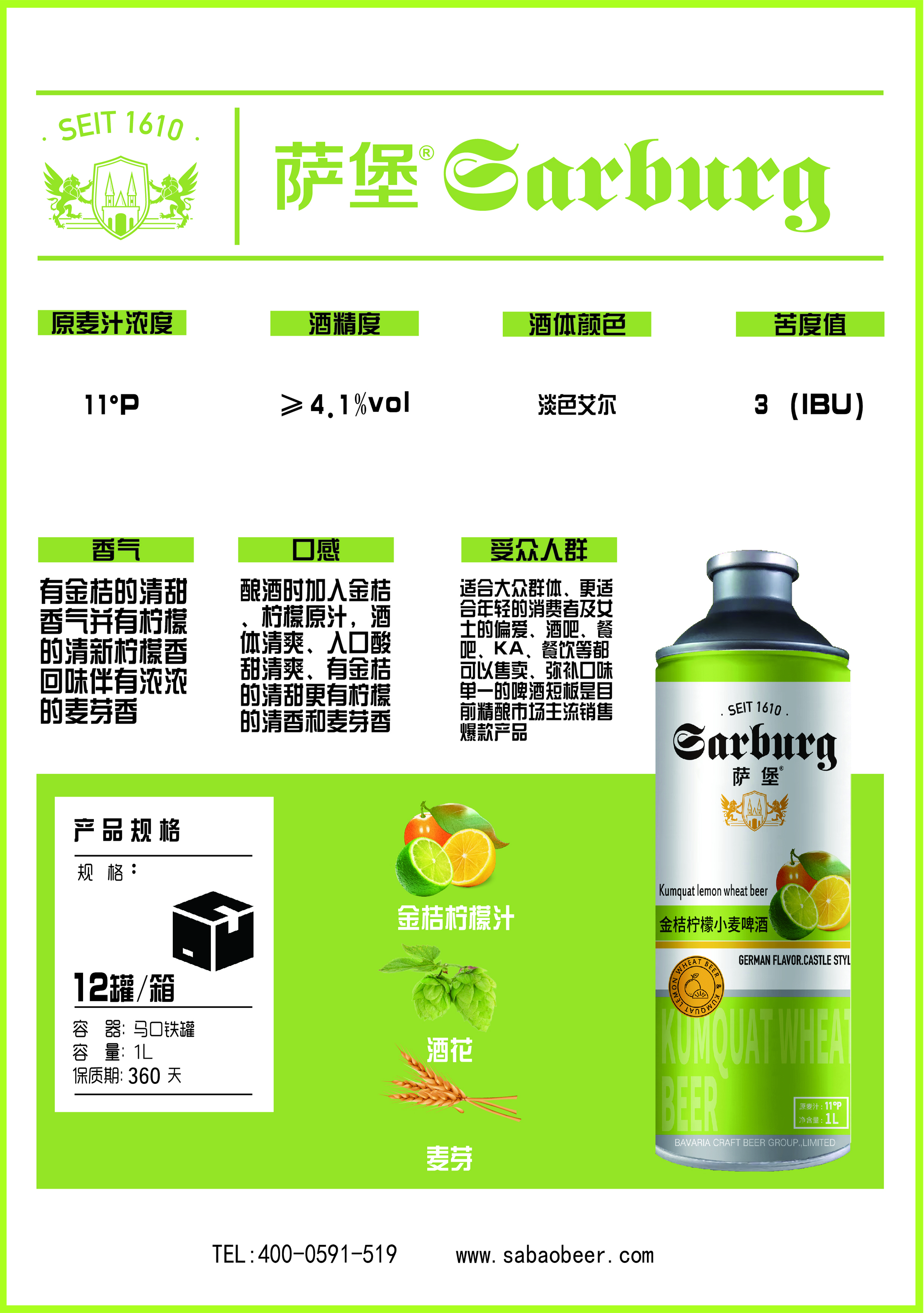萨堡精酿啤酒金桔柠檬艾尔